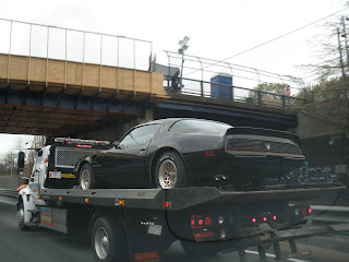 There are a few things on God's green earth that makes me instantly revert to my juvenile self -The theme to "The Dukes of Hazzard", hearing Phil Rizzuto's voice on old Yankee broadcasts and seeing an exact replica of the Trans Am from "Smokey and the Bandit." When I saw this delightful vehicle today I instantly wanted a CB mounted on the dash of my Toyota. Stupid cell phones killed off that form of communication. Texting my wife that I would be home soon because I was "gonna put the hammer down" didn't seem as satisfying as barking it into a CB and screaming "HEEEHAWWW."